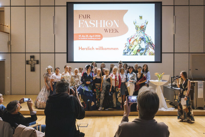 Zur Fair Fashion-Modenschau samt Preisverleihung war der Saal des Landratsamts am vergangenen Freitag bis auf den letzten Platz gefüllt. Die Veranstaltung bildete den Auftakt der „Fair Fashion Week“, die Zeichen für bewussten Modekonsum, Kreativität und gesellschaftliche Verantwortung setzen möchte. Organisiert wird die Woche von Miriam Anton, Koordinatorin für kommunale Entwicklungspolitik sowie den Klimaschutzmanager-innen Tanja Weigel und Eva Brugger.