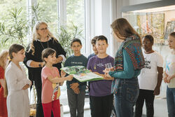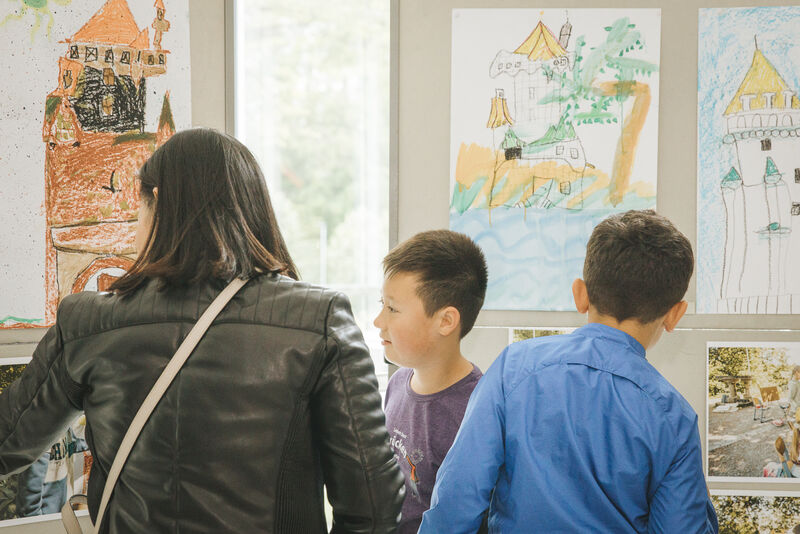 Malerin Angelika Böhm-Silberhorn war es besonders wichtig, mit den Kindern über deren Malerei zu sprechen und hob hervor, dass die Bilder Quellen der Kraft, Identität und inneren Reichtums sind. „Die Kinder kommen aus verschiedenen Ländern mit verschiedenen Sprachen, mit verschiedenen Bildsprachen, die nur mit dem Herzen zu verstehen sind“, sagte sie.
