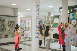 Die Bilder der Kinder und zahlreiche Fotos der Malaktion sind bis zum 26. Juni im „kulturschauplatz“ im Foyer des Landratsamtes zu den üblichen Öffnungszeiten zu besichtigen. Im gesamten Foyer ist im gleichen Zeitraum auch noch die eindrucksvolle Ausstellung der Kunstpreisträgerin „WasserWellenLuftTheater“ zu sehen.