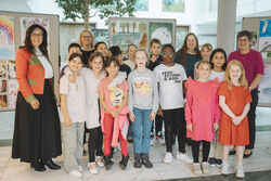 In einer kleinen Vernissage, organisiert von der Kreisheimatpflege, stellten die Kinder der Klasse 3a der Landsberger Katharinenschule, mit Lehrerin Heidi Bridgeman, im Landratsamt Landsberg die Bilder vor, die sie im Mai zusammen mit der Kunstpreisträgerin des Landkreises Angelika Böhm-Silberhorn im Herkomerpark malen durften.