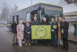 Fotos Leitenstorfer von links: Detlev Metzner (MVV), Anna Rudlof (ÖPNV LL), Phillipp Wenninger (ÖPNV LL), Barbara Wanzke (Gemeinderätin Inning), Bürgermeister Michael Klotz (Eresing), Landrat Thomas Eichinger, Matthias Fay (Busservice Watzinger), Ministerialdirigent Dr. Josef Rott (Bayerisches Staatsministerium Wohnen, Bau und Verkehr), Landrat Stefan Frey, Markus Reichart (ÖPNV STA), Bürgermeister Richard Michl (Windach), Bürgermeister Robert Sedlmayr (Geltendorf) - im Bus: Busfahrer Jakob (Busservice Watzinger)