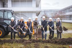 Fotos Leitenstorfer - von links: Ulrich Koebberling und Carolin Frank (beide Hochbau Landratsamt), Bürgermeiterin Sandra Perzul (Markt Dießen), Landrat Thomas Eichinger, Alfred Lippl (Schulleiter), Architekt Angelo Augustini, Birgit Schiegg (Landkreis - Schulverwaltung).