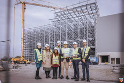 Beim Unternehmensbesuch von Landrat Eichinger beim Logistikzentrum der EDEKA Südbayern im Frauenwald gibt es einiges zu sehen. Das Unternehmen zählt mit aktuell rund 650 Arbeitsplätzen zu den größten Arbeitgebern im Landkreis Landsberg am Lech und wächst in Zukunft auch weiterhin erfolgreich am Standort. Neben einem Austausch mit Dr. Dirk Eßmann (Vorstand), Patrick Zurheide (Geschäftsbereichsleiter Logistik) und Dario Bährle (Betriebsleiter Logistikzentrum Landsberg am Lech) gab es spannende Einblicke in das hochtechnisierte Logistikzentrum und in das 27.000m2 große Bauvorhaben: EDEKA Südbayern investiert aktuell in eine eigene Getränkelogistik und setzt u.a. auf ein vollautomatisches Hochregallager und modernster Robotertechnik. Geplant ist eine Getränkeversorgung von bis zu 1300 Märkten in südbayerischen Raum. Ziel ist es, das Getränkesortiment im Markt um regionale Erzeugnisse auszubauen und die enge Zusammenarbeit mit regionalen Brauereien zu stärken. Bis 2025 investiert das Unternehmen bis zu 150 Mio. Euro für den Neubau und schafft bis zu 300 neue Arbeitsplätze am Standort in Landsberg, vor allem im Bereich der Verwaltung, für Anlagen-Bediener, Lkw-Fahrer, Elektriker sowie Informatiker. Bereits heute ist der moderne Lebensmittelhändler auf der Suche nach interessierten Bewerberinnen und Bewerber.