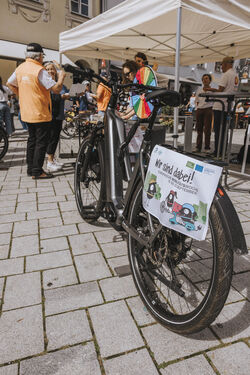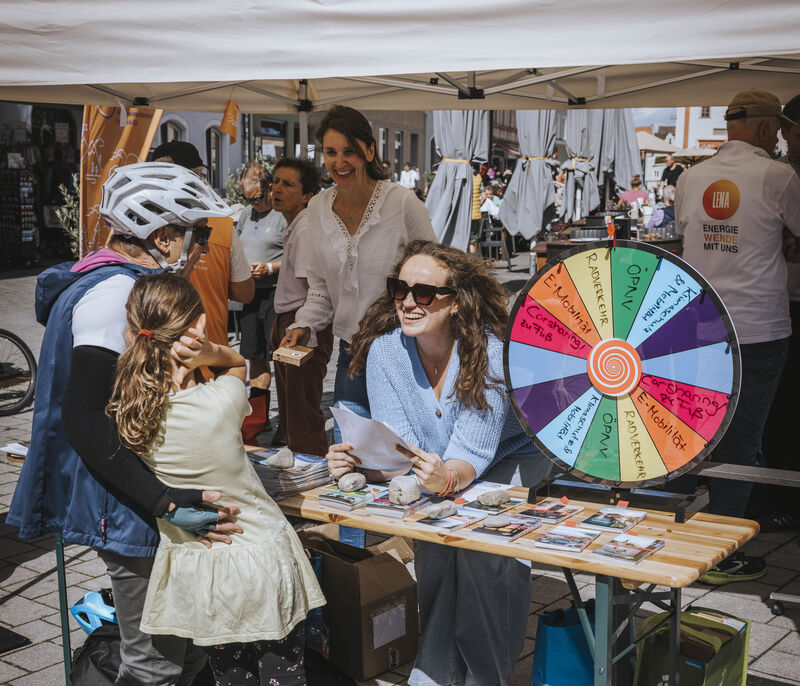 Bei einer gemeinsamen Aktion der Fachstelle Klimaschutzmanagement im Landratsamt Landsberg, dem ADFC Landsberg und der Landsberger Energieagentur LENA e.V. am Hauptplatz in Landsberg, konnten sich Bürgerinnen und Bürger über die Radwege im Landkreis informieren und ihre Vorschläge und Wünsche zum Radwegenetz äußern. Ebenfalls wurde ein Quiz für Kinder und für Erwachsene mit verschiedenen Themen zur nachhaltigen Mobilität angeboten.