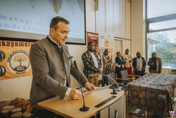 Nachdem sich die Delegation vorgestellt hatte, las Landrat Thomas Eichinger den rund 70 Gästen das Dokument auf Englisch vor. Darin heißt es unter anderem: “Die beiden Partner verpflichten sich, Initiativen einer vielfältigen Zusammenarbeit sowie direkte Kontakte zwischen Bürgern, lokalen Behörden und anderen Institutionen und Organisationen zu fördern und aufrechtzuerhalten, um die globalen Herausforderungen auf der Grundlage der Agenda 2030 gemeinsam anzugehen.“ Zu den Zielen, die die Landkreise gemeinsam bearbeiten wollen, zählen zum Beispiel: Gesundheitsfürsorge - SDG 3 und 6, Jugend, Bildung und Sport - SDG 4 und 5 sowie die Förderung von Landwirtschaft und nachhaltigem Konsum - SDG 1, 2, 12 und 15.