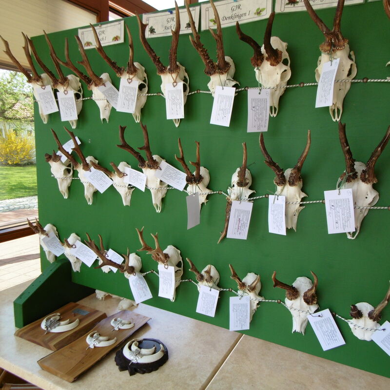 Bei der Hegeschau wird der Kopfschmuck des im Landkreis Landsberg am Lech im Jagdjahr 2025/2026 erlegten Schalenwilds von den Revierinhabern vorgelegt.