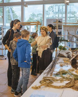 Auch das Steinzeitdorf bei Pestenacker (Gemeinde Weil) lockte am Denkmaltag wieder über 600 Gäste, vor allem Familien mit kleinen Kindern, an. Auf Mitmachstationen konnten die Besucherinnen und Besucher ins Leben der Menschen vor über 5.500 Jahren eintauchen. Gezeigt wurden die Handwerkstechniken der Jungsteinzeit – vom Weidenflechten und Lederschmuckherstellen bis hin zum Backen. Die Besichtigung der Burgruine Haltenberg (Gemeinde Scheuring) ist ein Fixpunkt des Denkmaltags im Landkreis. Bei Führungen gab es Infos zur Geschichte der Burg, und vom Bergfried aus konnte man einen Weitblick über den Lech im Westen und das Westerholz im Osten genießen.