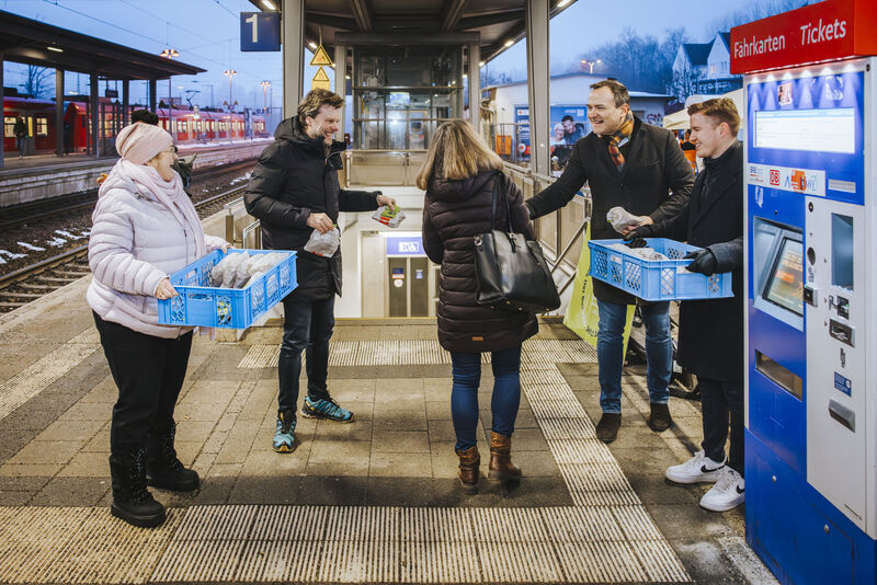 In den frühen Morgenstunden luden Landrat Thomas Eichinger und Geltendorfs Bürgermeister Robert Sedlmayr anlässlich der Einführung der Expressbuslinie X910 kürzlich zum kleinen Pendlerfrühstück am Bahnhof Geltendorf ein. Vorbeieilende Pendler auf ihrem Weg zur Regionalbahn oder S-Bahn wurden mit frischen Brezen und praktischen Minifahrplänen der neuen Expressbuslinie X910 versorgt.