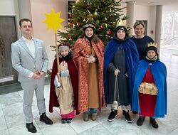 Ein besonderes Zeichen des Segens und der Solidarität gleich zu Jahresbeginn: Die Sternsinger der Pfarrei „Zu den Heiligen Engeln“ waren im Landratsamt Landsberg am Lech zu Gast. Empfangen wurden sie von Tobias Reinhold (Stellv. des Landrats im Amt). Nach der traditionellen Segensbitte für das Haus und alle Mitarbeitenden des Landratsamts setzten die Sternsinger ihre Tour durch Landsberg fort – begleitet von Liedern, Weihrauch und dem Wunsch, Gutes zu tun. Im Gepäck hatten sie nicht nur Kreide und Segen, sondern auch eine wichtige Botschaft.